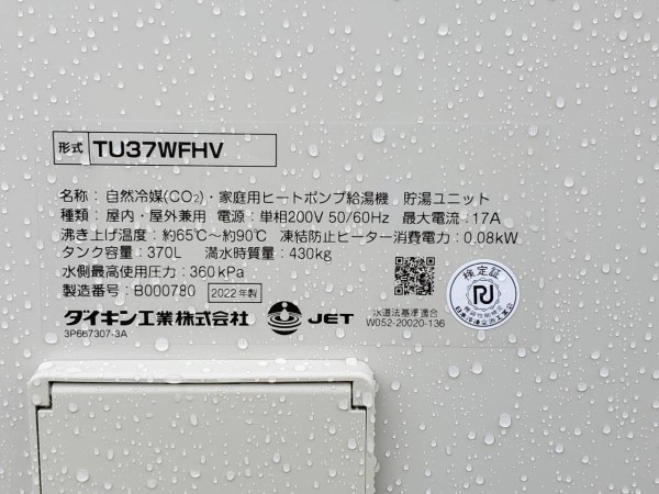 岡山市中区 ダイキン自然冷媒(CO2)・家庭用ヒートポンプ給湯機 貯湯ユニットTU37WFHV エコキュート交換工事|岡山県のエコキュート専門交換工事店|岡山エコキュート交換ショップ補助金対応可能