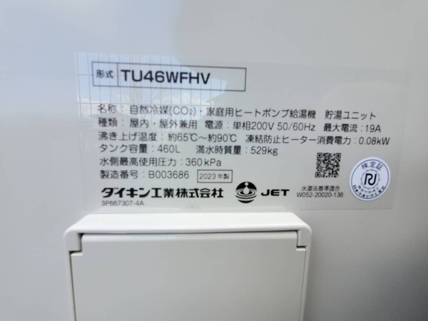 岡山市北区 ダイキン自然冷媒(CO2)・家庭用ヒートポンプ給湯機 貯湯ユニットTU46WFHV エコキュート交換工事|岡山県のエコキュート専門交換工事店|岡山エコキュート交換ショップ補助金対応可能