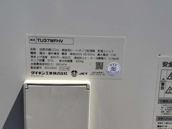 高梁市寺町 ダイキン自然冷媒(CO2)・家庭用ヒートポンプ給湯機 貯湯ユニットTU37WFHV エコキュート交換工事|岡山県のエコキュート専門交換工事店|岡山エコキュート交換ショップ補助金対応可能