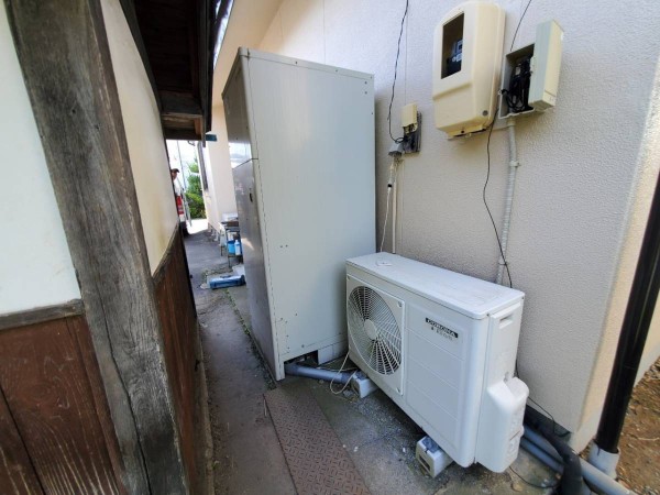 玉野市石島 コロナ自然冷媒CO2家庭用ヒートポンプ給湯機 ヒートポンプユニットCHP-YA603K エコキュート交換工事