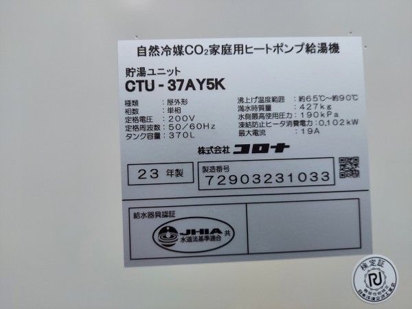 玉野市石島 コロナ自然冷媒CO2家庭用ヒートポンプ給湯機貯湯ユニットCTU-37AY5K エコキュート交換工事
