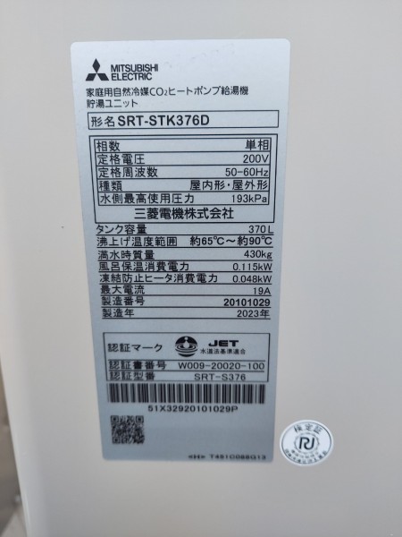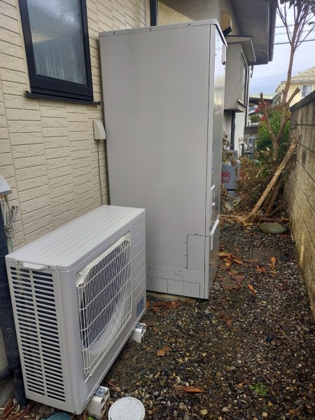 トップページ > 工事事例一覧 > 玉野市下山坂 三菱電機家庭用自然冷媒CO2ヒートポンプ給湯機貯湯ユニットSRT-STK376D エコキュート交換工事