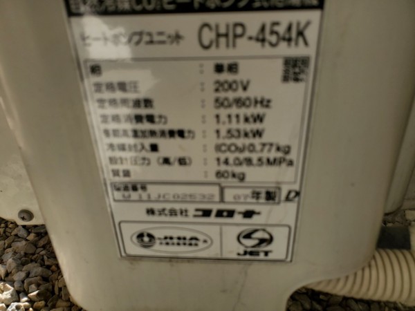 新見市大佐永富 コロナ自然冷媒CO2家庭用ヒートポンプ給湯機ヒートポンプユニットCHP-454K エコキュート交換工事|岡山県のエコキュート専門交換工事店|岡山エコキュート交換ショップ補助金対応可能