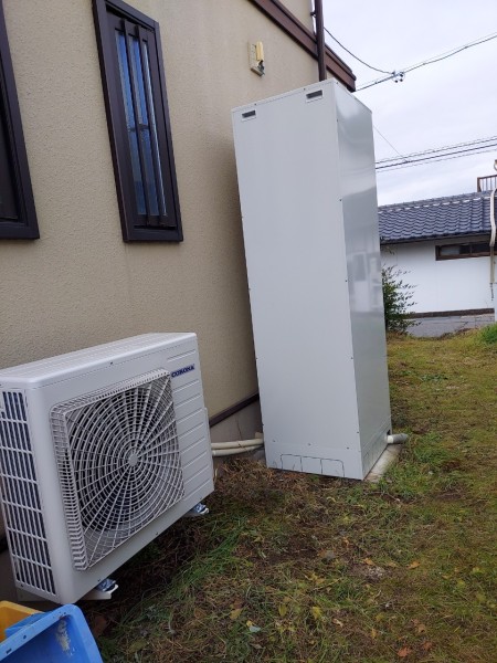 岡山市中区 コロナ自然冷媒CO2家庭用ヒートポンプ給湯機貯湯ユニットCTU-S46AY5K エコキュート交換工事