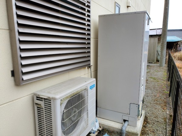 新見市菅生 コロナ自然冷媒CO2家庭用ヒートポンプ給湯機ヒートポンプユニットCHP-Y454K エコキュート交換工事