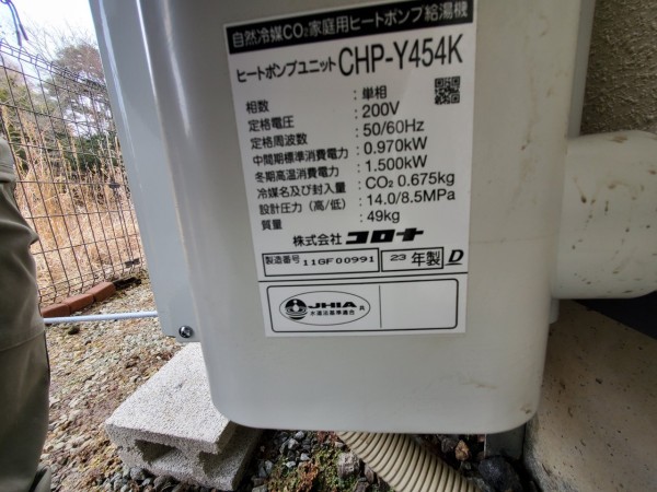 新見市菅生 コロナ自然冷媒CO2家庭用ヒートポンプ給湯機ヒートポンプユニットCHP-Y454K エコキュート交換工事|岡山県のエコキュート専門交換工事店|岡山エコキュート交換ショップ補助金対応可能