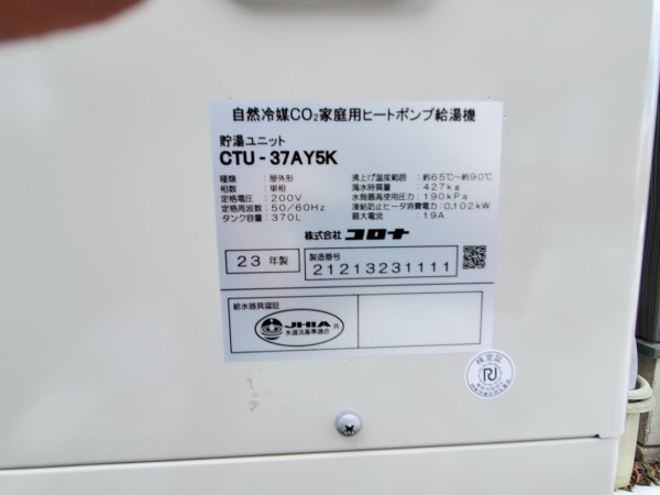 津山市京町 コロナエコキュート→コロナ自然冷媒CO2家庭用ヒートポンプ給湯機給湯機貯湯ユニットCHP-37AY5K エコキュート交換工事
