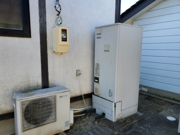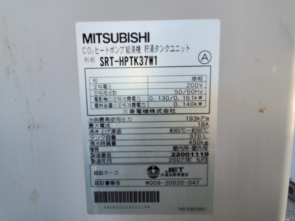 新見市大佐永富 三菱電機エコキュート→三菱電機自然冷媒CO2家庭用ヒートポンプ給湯機貯湯ユニットSRT-STK376D エコキュート交換工事