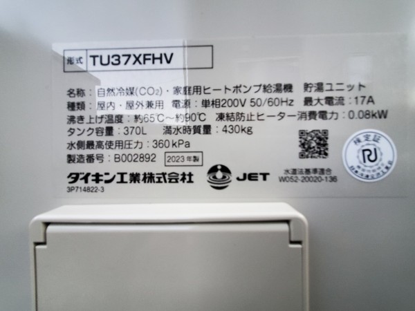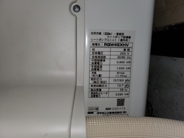 赤磐市惣分 ダイキン自然冷媒CO2家庭用ヒートポンプ給湯機ヒートポンプユニットRQW45XHV、貯湯ユニットTU37XFHV エコキュート交換工事