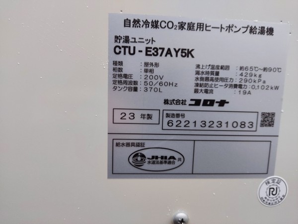 岡山市北区 コロナ自然冷媒CO2家庭用ートポンプ給湯機貯湯ユニットCTU-E37AY5K エコキュート交換工事