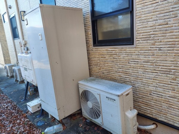 新見市菅生 コロナ自然冷媒CO2家庭用ヒートポンプ給湯機ヒートポンプユニットCHP-Y454K、貯湯ユニットCTU-37AY5K エコキュート交換工事
