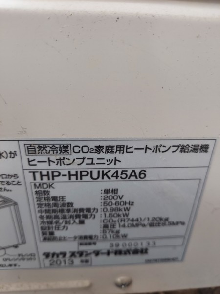 津山市京町 タカラスタンダードエコキュート→コロナ自然冷媒CO2家庭用ヒートポンプ ヒートポンプユニットCHP-Y454K エコキュート交換工事