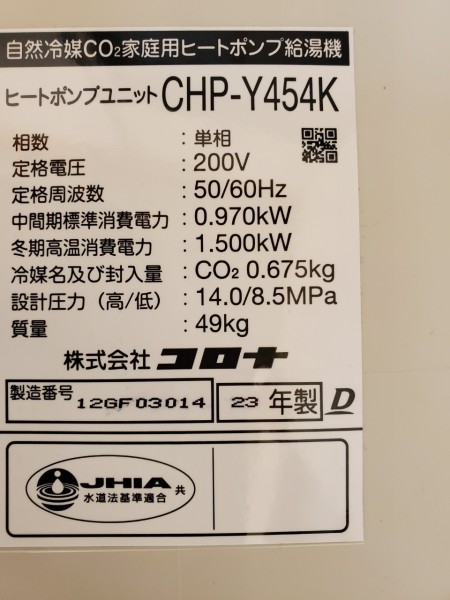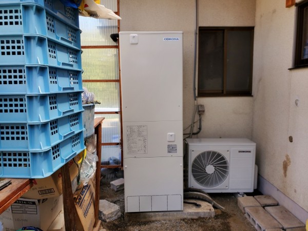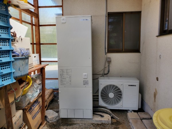 津山市京町 コロナ自然冷媒CO2家庭用ヒートポンプ ヒートポンプユニットCHP-Y454K エコキュート交換工事