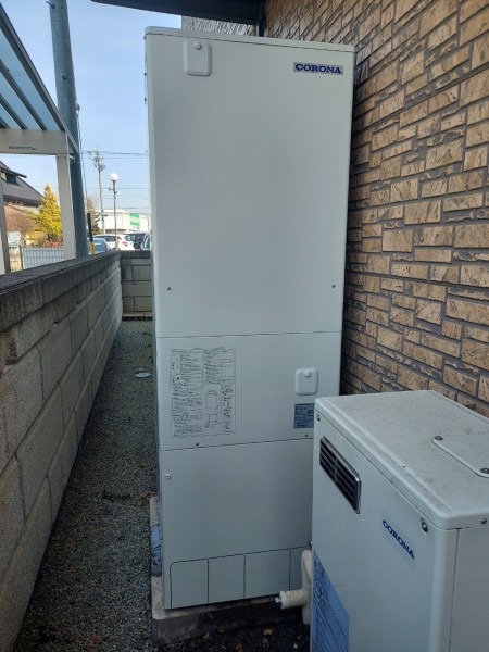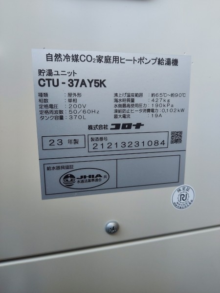 井原市下稲木町 コロナ自然冷媒CO2家庭用ヒートポンプ給湯機貯湯ユニットCTU-37AY5K エコキュート交換工事