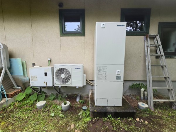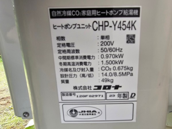 総社市下倉 コロナ自然冷媒CO2家庭用ヒートポンプ給湯機ヒートポンプユニットCHP-Y454K エコキュート交換工事