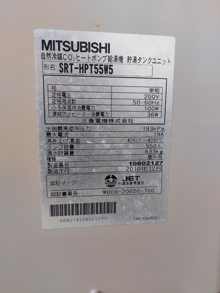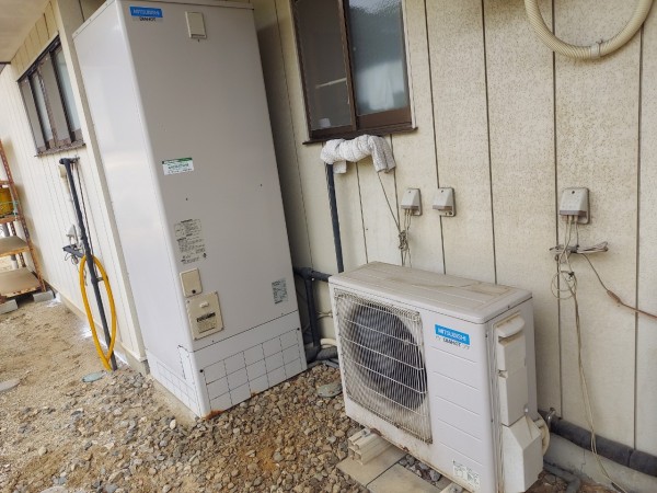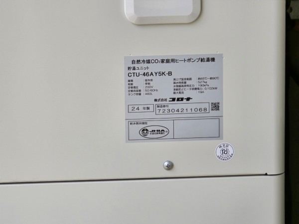 玉野市下山坂 コロナ自然冷媒CO2家庭用ヒートポンプ給湯機貯湯ユニットCTU-46AY5K-B エコキュート交換工事