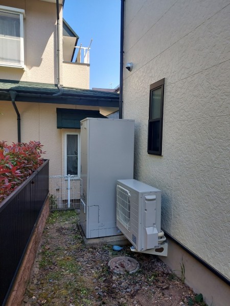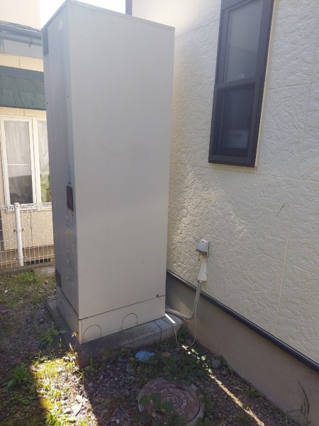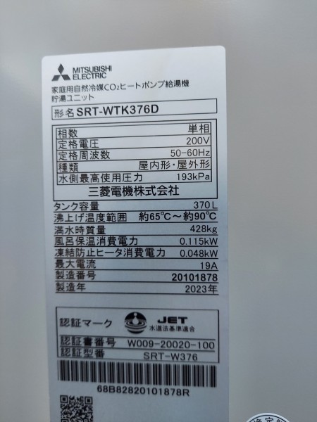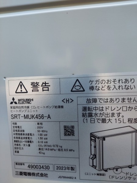 津山市押渕 三菱電機自然冷媒CO2家庭用ヒートポンプ給湯機ヒートポンプユニットSRT-MUK456-A、貯湯ユニットSRT-WTK376D エコキュート交換工事