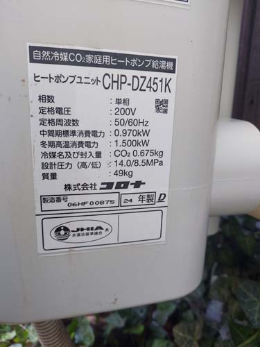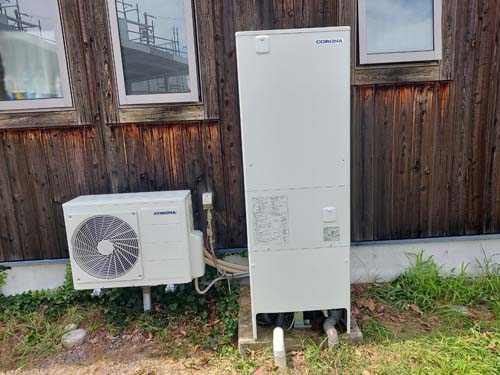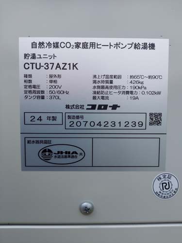 井原市下稲木町 コロナ自然冷媒CO2家庭用ヒートポンプ給湯機 貯湯ユニットCTU-37AZ1K、ヒートポンプユニットCHP-DZ451Kエコキュート交換工事