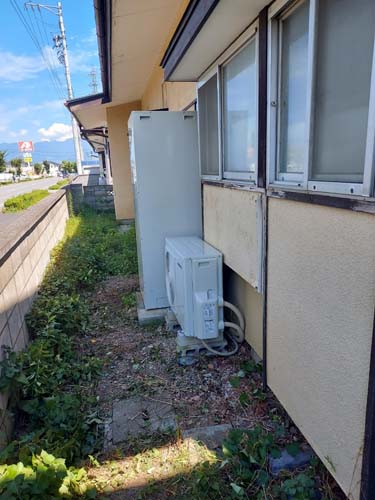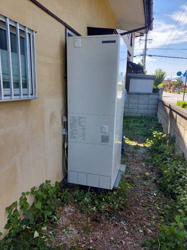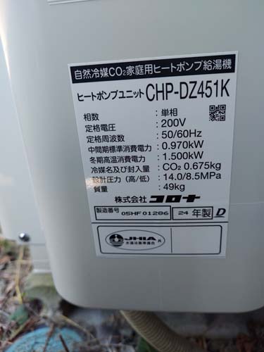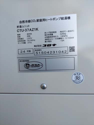 赤磐市惣分 コロナ自然冷媒CO2家庭用ヒートポンプ給湯機ヒートポンプユニットCTU-37AZ1K、ヒートポンプユニットCHP-DZ451K エコキュート交換工事
