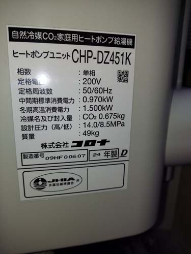 玉野市下山坂 コロナ自然冷媒CO2家庭用ヒートポンプ給湯機 ヒートポンプユニットCHP-DZ451K エコキュート交換工事