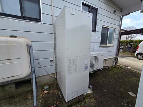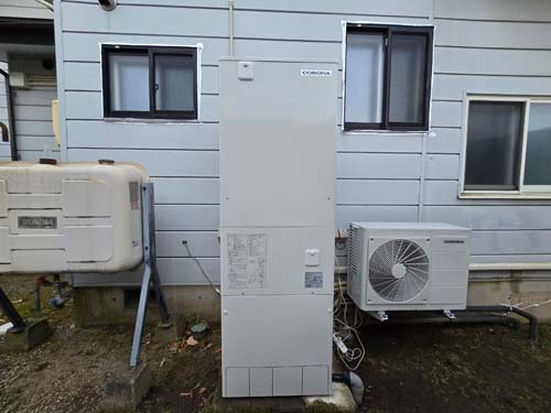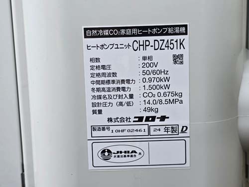 岡山市東区 コロナエコキュート→コロナ自然冷媒CO2家庭用ヒートポンプ給湯機 ヒートポンプユニットCHP-DZ451K エコキュート交換工事