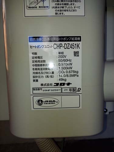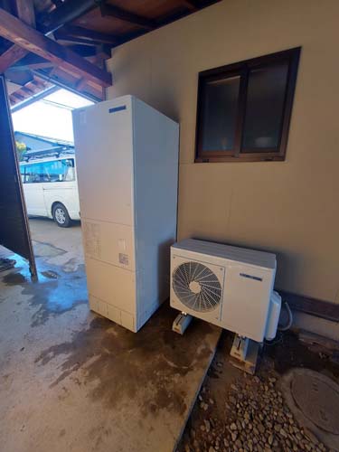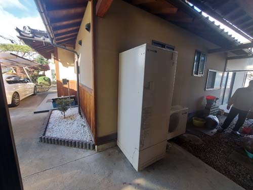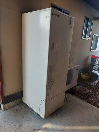 トップページ > 工事事例一覧 > 笠岡市甲弩 コロナ自然冷媒CO2家庭用ヒートポンプ給湯機貯湯ユニットCTU-37AZ1K、ヒートポンプユニットCHP-DZ451K エコキュート交換工事