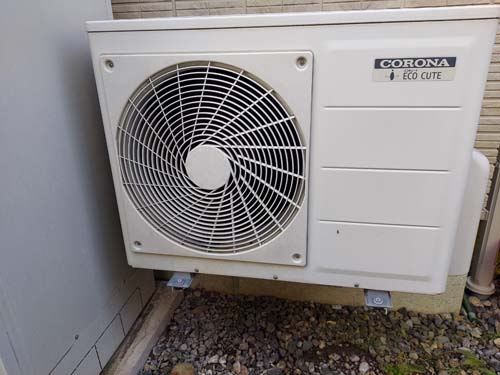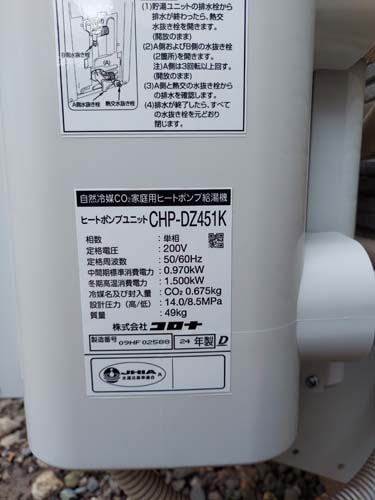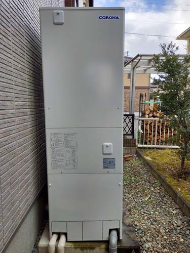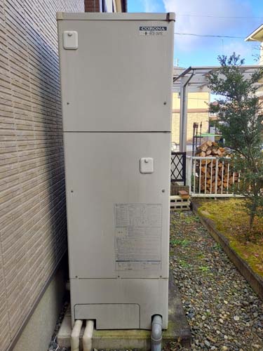 高梁市寺町 コロナエコキュート→コロナ自然冷媒CO2家庭用ヒートポンプ給湯機 ヒートポンプユニットCHP-DZ451K エコキュート交換工事