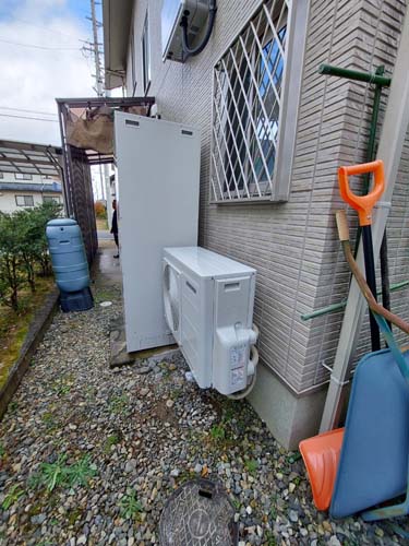トップページ > 工事事例一覧 > 高梁市寺町 コロナ自然冷媒CO2家庭用ヒートポンプ給湯機 ヒートポンプユニットCHP-DZ451K エコキュート交換工事