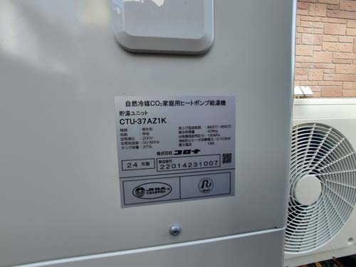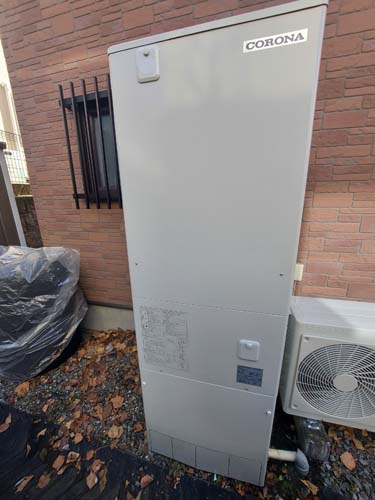 笠岡市横島 コロナ自然冷媒CO2家庭用ヒートポンプ給湯機貯湯ユニットCTU-37AZ1K、ヒートポンプユニットCHP-DZ451K エコキュート交換工事