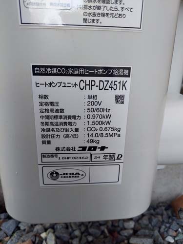 笠岡市横島 コロナ自然冷媒CO2家庭用ヒートポンプ給湯機 ヒートポンプユニットCHP-456K→コロナ自然冷媒CO2家庭用ヒートポンプ給湯機貯湯ユニットCTU-37AZ1K、ヒートポンプユニットCHP-DZ451K エコキュート交換工事